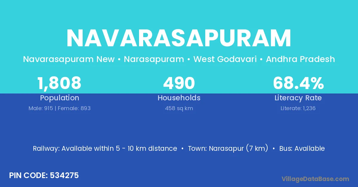 Narasapur (7 km) is the nearest town to Navarasapuram village for major economic activities and is located approximately 7 km away.