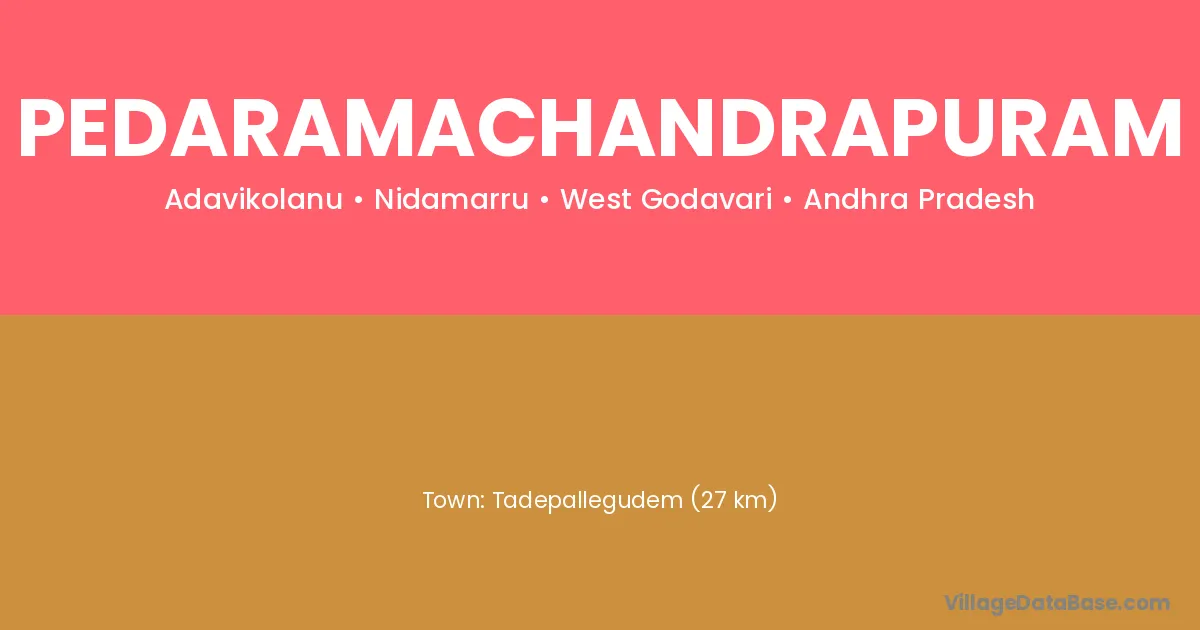 Tadepallegudem (27 km) is the nearest town to Pedaramachandrapuram village for major economic activities and is located approximately 27 km away.