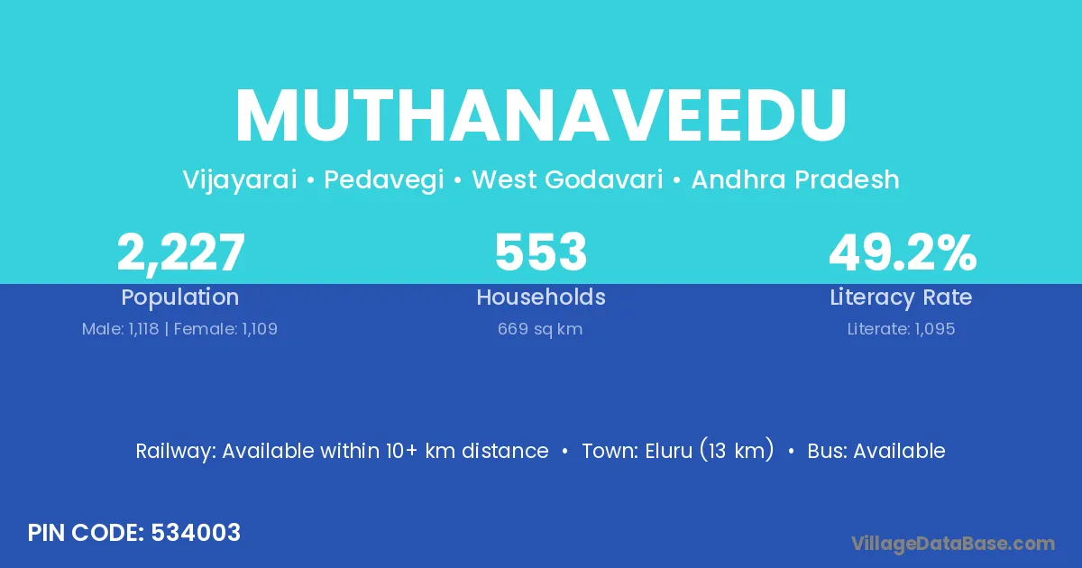 According to Census 2011 information, the village code of Muthanaveedu village is 534003.