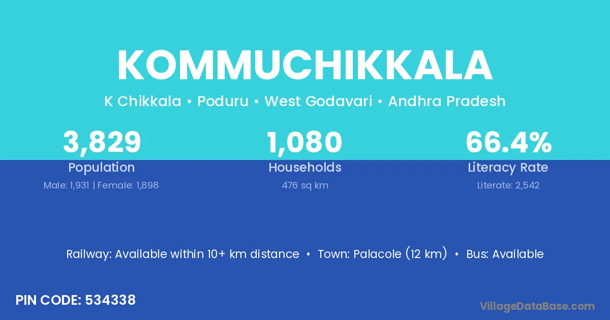 According to Census 2011 information, the village code of Kommuchikkala village is 534338.