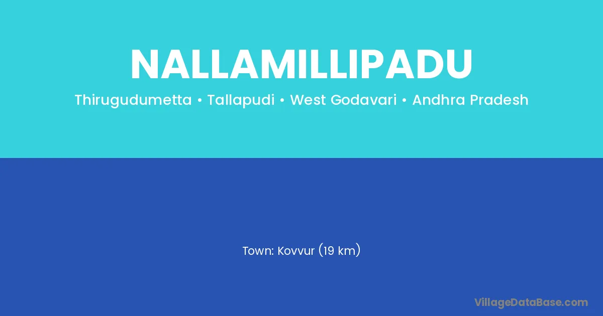 Kovvur (19 km) is the nearest town to Nallamillipadu village for major economic activities and is located approximately 19 km away.
