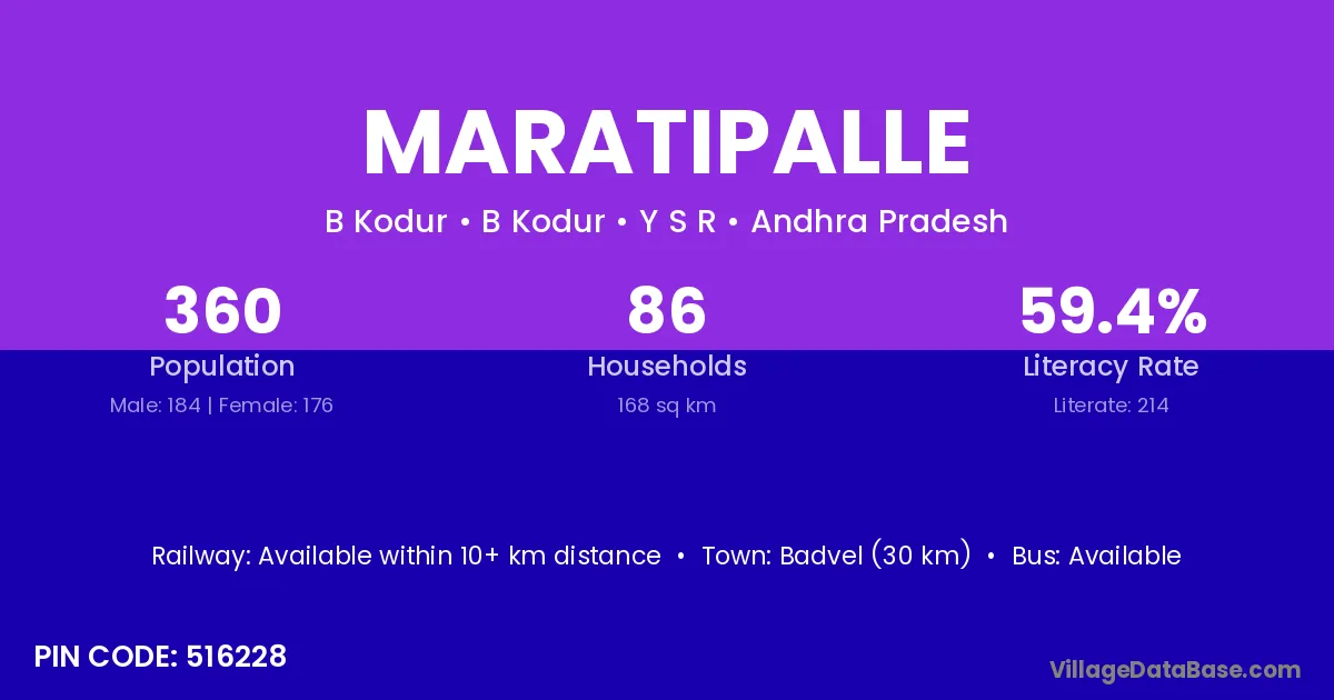 Badvel (30 km) is the nearest town to Maratipalle village for major economic activities and is located approximately 30 km away.