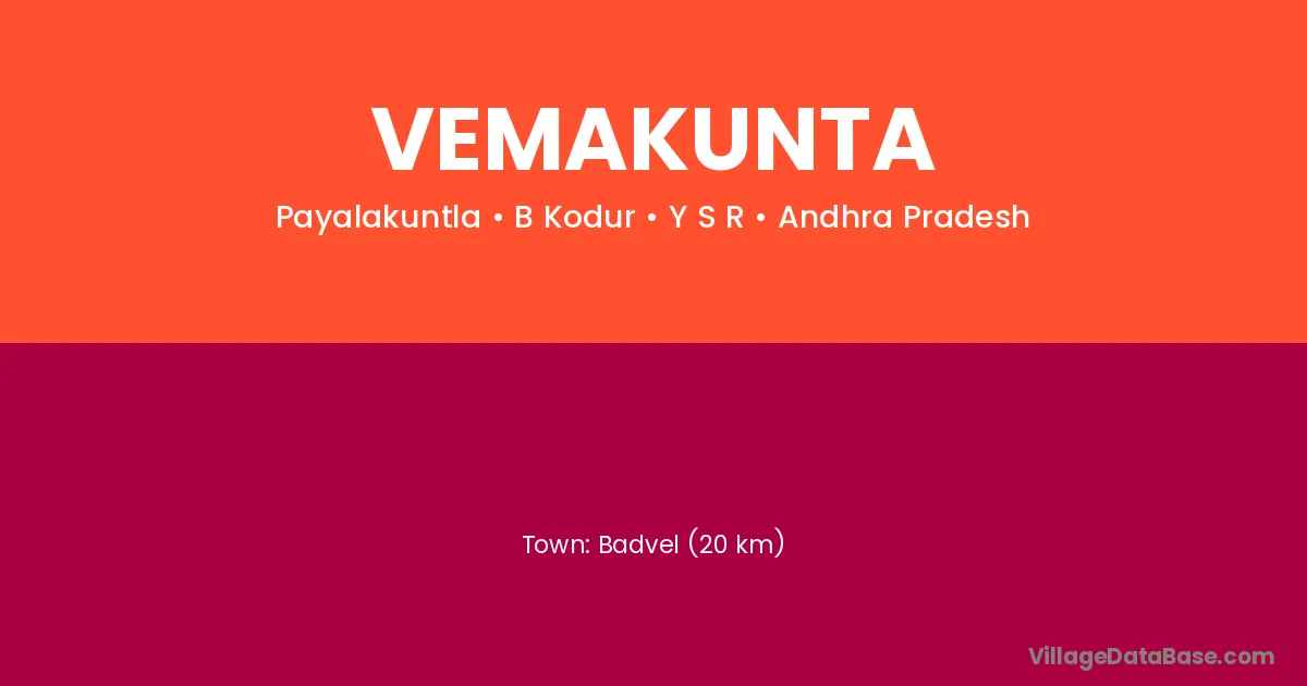 Badvel (20 km) is the nearest town to Vemakunta village for major economic activities and is located approximately 20 km away.