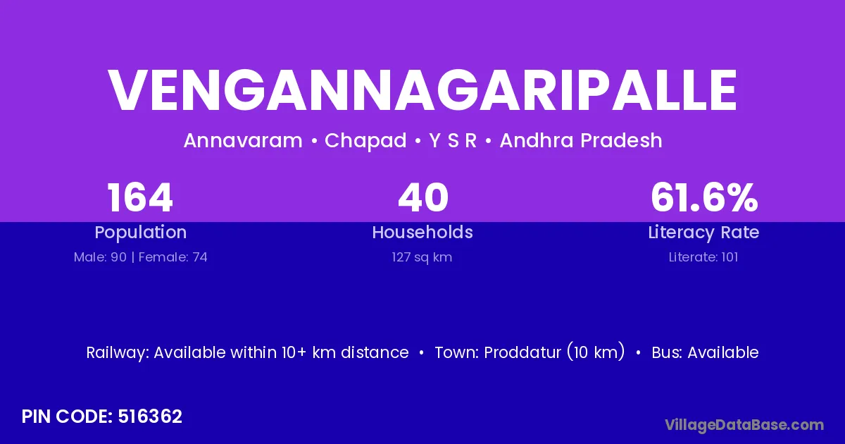 Proddatur (10 km) is the nearest town to Vengannagaripalle village for major economic activities and is located approximately 10 km away.