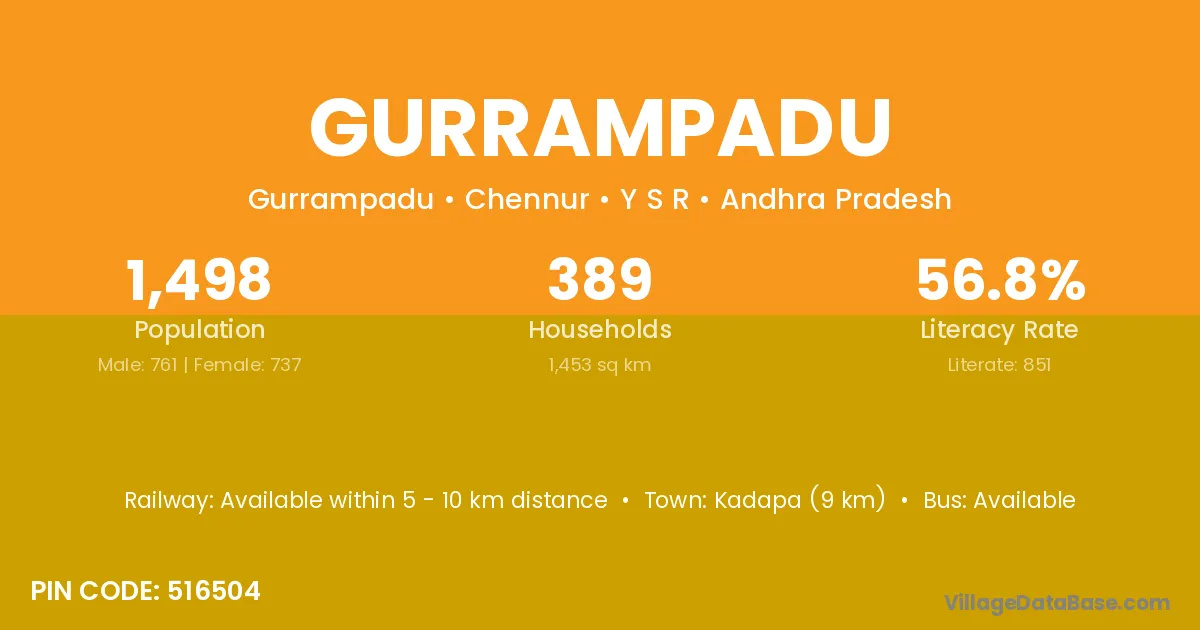 Kadapa (9 km) is the nearest town to Gurrampadu village for major economic activities and is located approximately 9 km away.