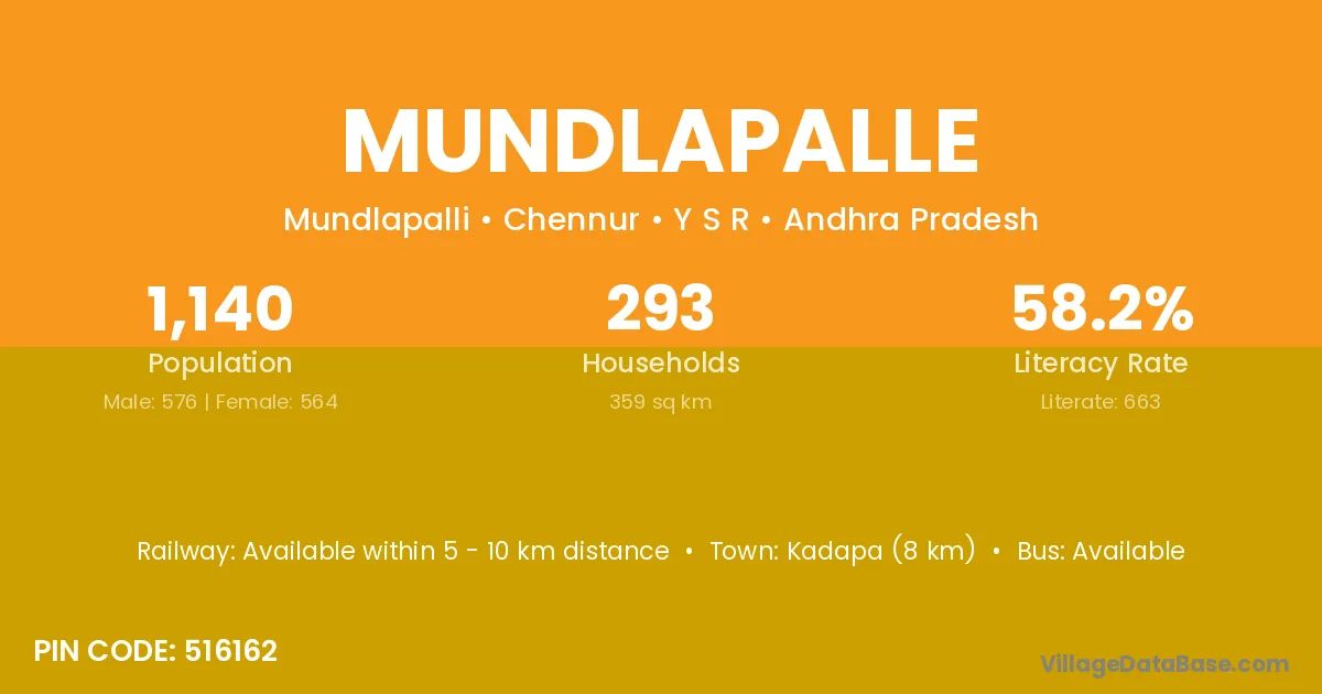 According to Census 2011 information, the village code of Mundlapalle village is 516162.