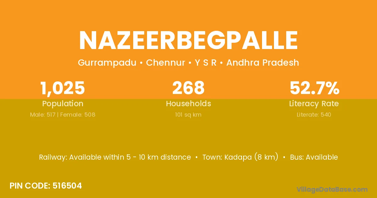 According to Census 2011 information, the village code of Nazeerbegpalle village is 516504.