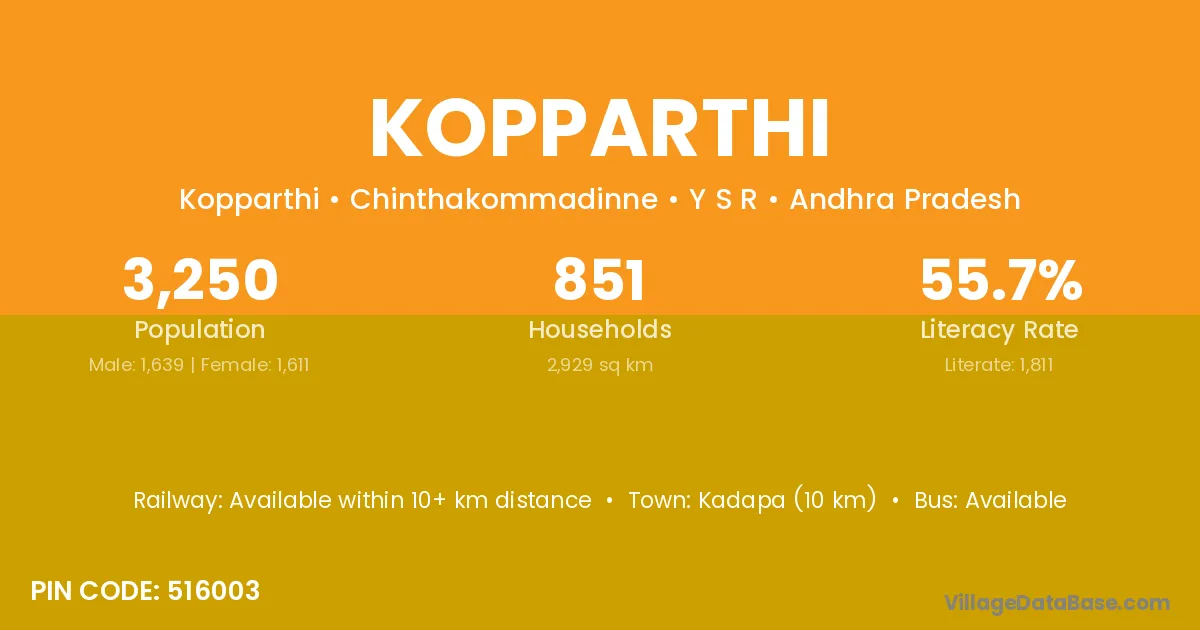 Kadapa (10 km) is the nearest town to Kopparthi village for major economic activities and is located approximately 10 km away.