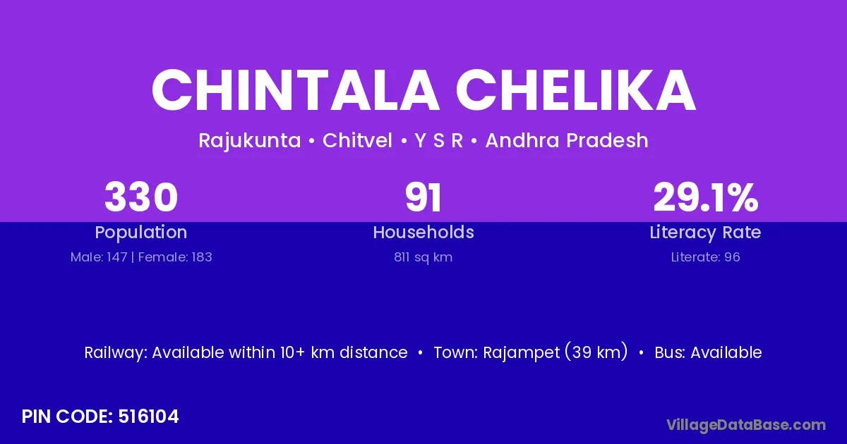 Rajampet (39 km) is the nearest town to Chintala Chelika village for major economic activities and is located approximately 39 km away.