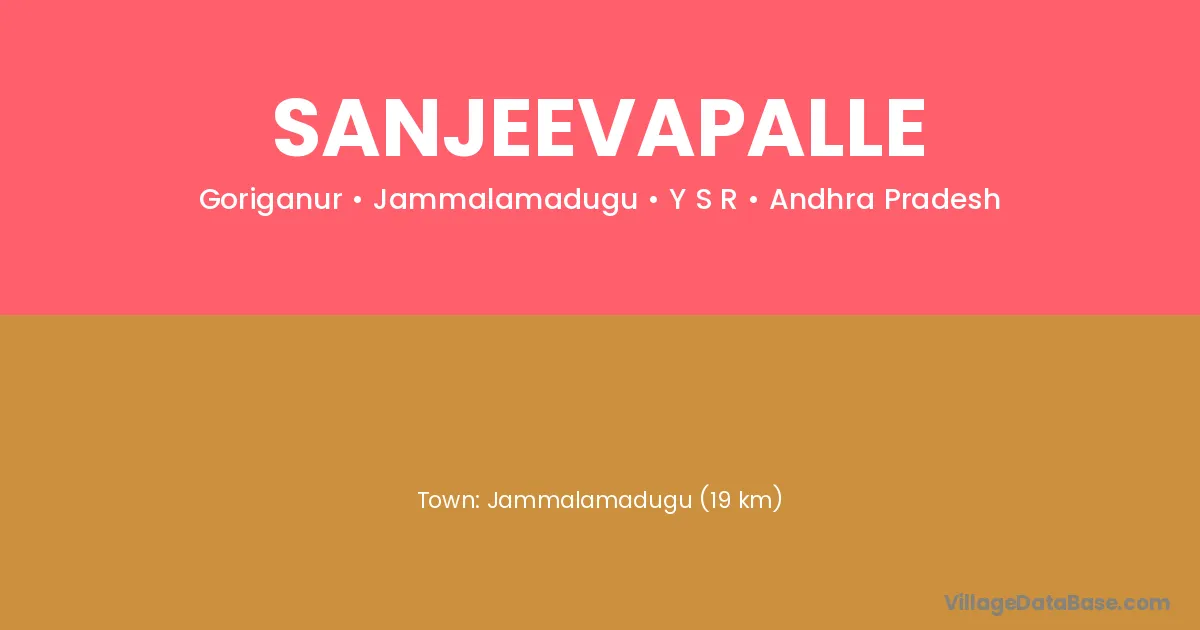 Jammalamadugu (19 km) is the nearest town to Sanjeevapalle village for major economic activities and is located approximately 19 km away.