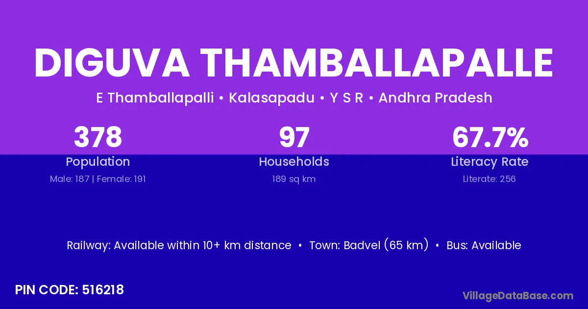 Diguva Thamballapalle village has a total population of 378 people, of which 187 are males and 191 are females.