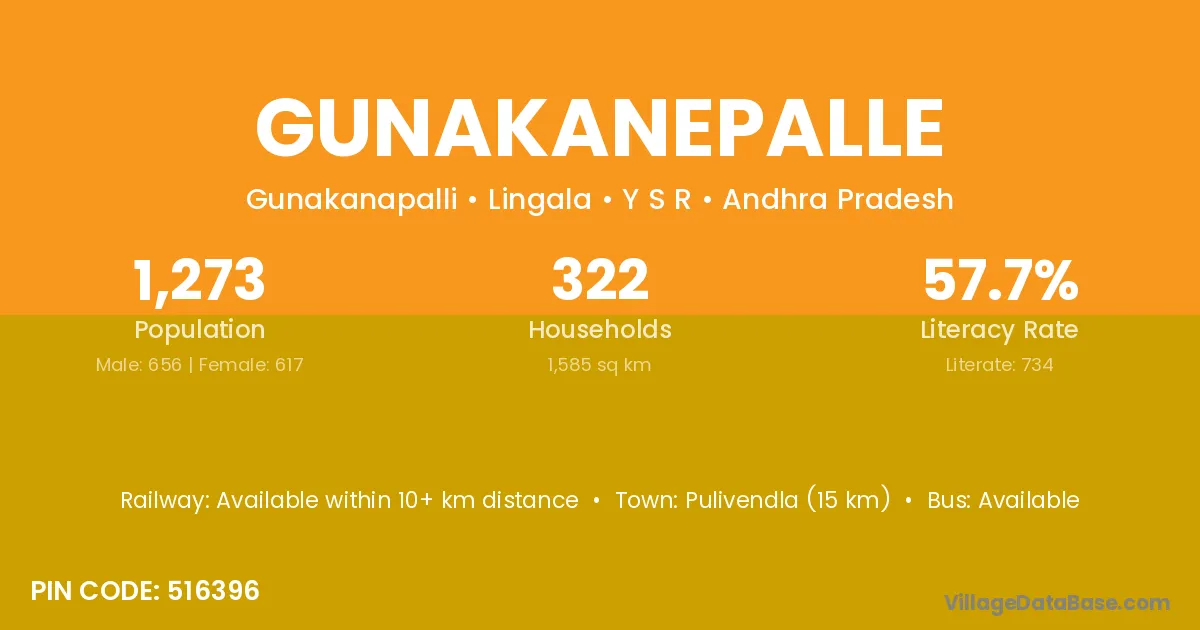 Pulivendla (15 km) is the nearest town to Gunakanepalle village for major economic activities and is located approximately 15 km away.