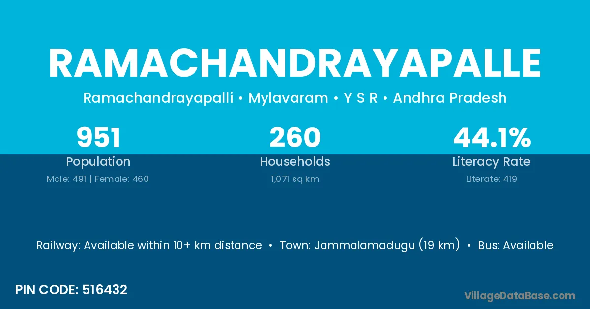 Jammalamadugu (19 km) is the nearest town to Ramachandrayapalle village for major economic activities and is located approximately 19 km away.