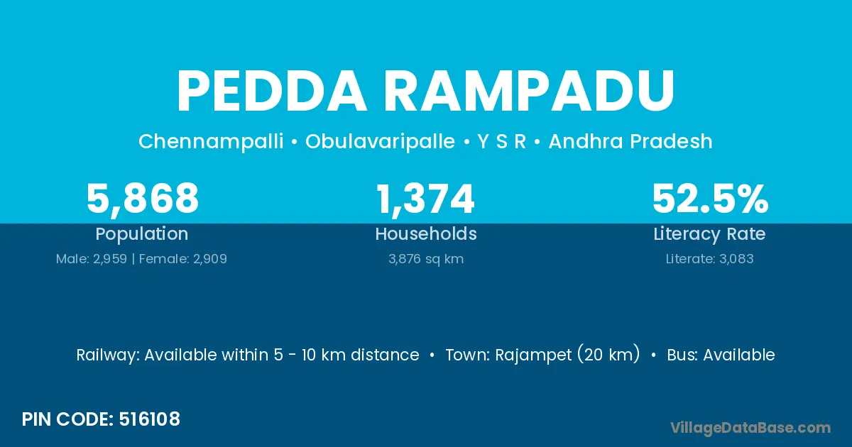 Rajampet (20 km) is the nearest town to Pedda Rampadu village for major economic activities and is located approximately 20 km away.