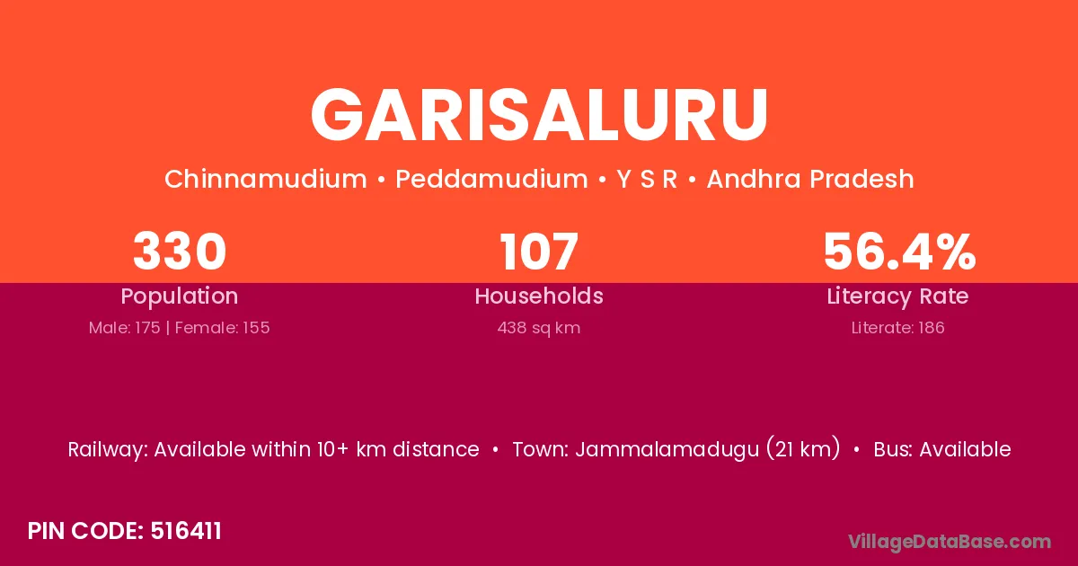 Jammalamadugu (21 km) is the nearest town to Garisaluru village for major economic activities and is located approximately 21 km away.