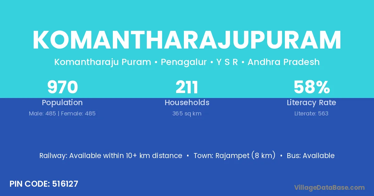 According to Census 2011 information, the village code of Komantharajupuram village is 516127.