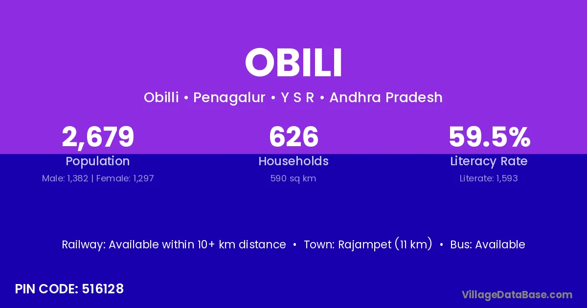 Rajampet (11 km) is the nearest town to Obili village for major economic activities and is located approximately 11 km away.