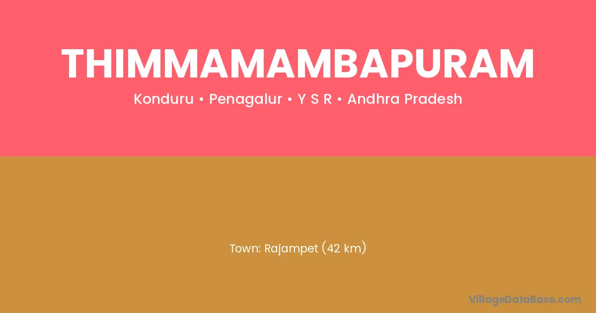 Rajampet (42 km) is the nearest town to Thimmamambapuram village for major economic activities and is located approximately 42 km away.