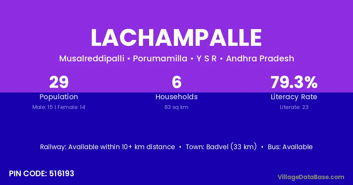 Badvel (33 km) is the nearest town to Lachampalle village for major economic activities and is located approximately 33 km away.