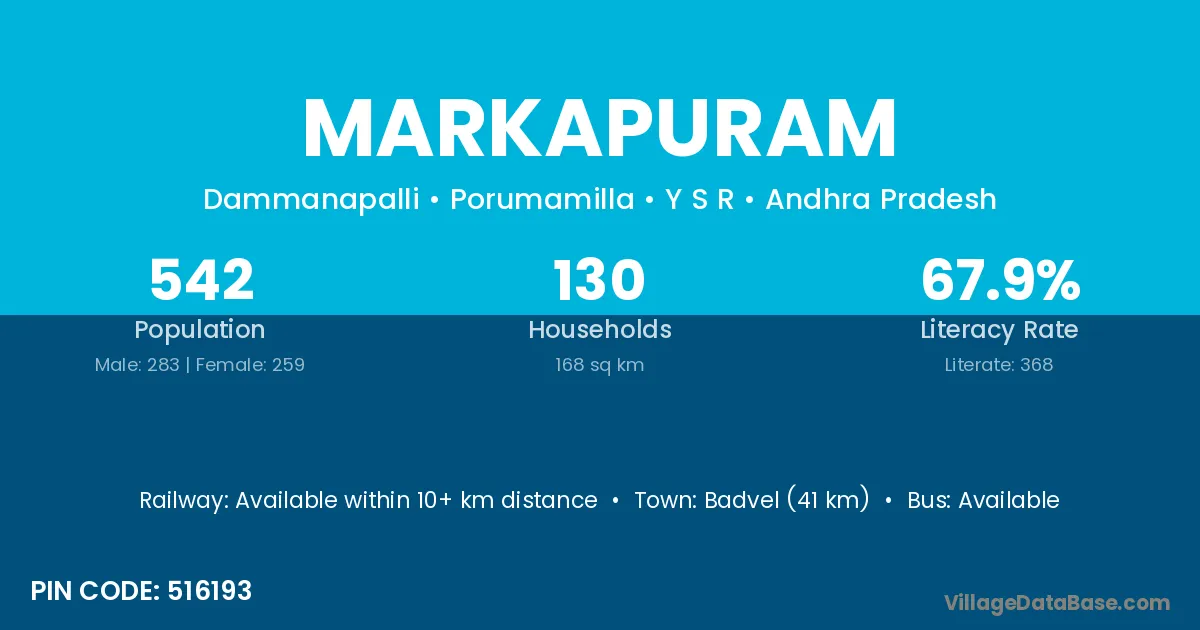 Markapuram village has a total population of 542 people, of which 283 are males and 259 are females.