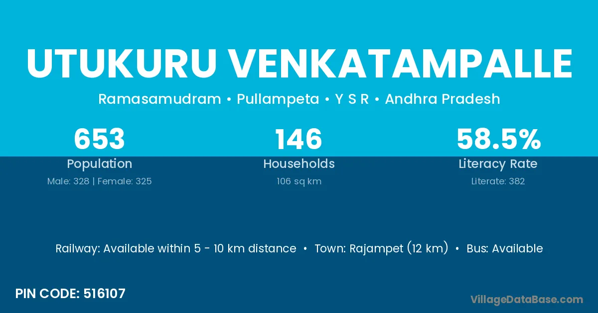 Rajampet (12 km) is the nearest town to Utukuru Venkatampalle village for major economic activities and is located approximately 12 km away.