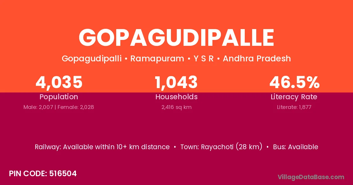 According to Census 2011 information, the village code of Gopagudipalle village is 516504.