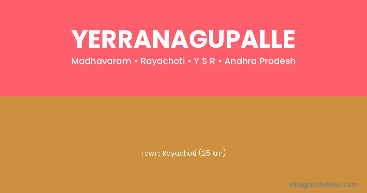 Rayachoti (25 km) is the nearest town to Yerranagupalle village for major economic activities and is located approximately 25 km away.