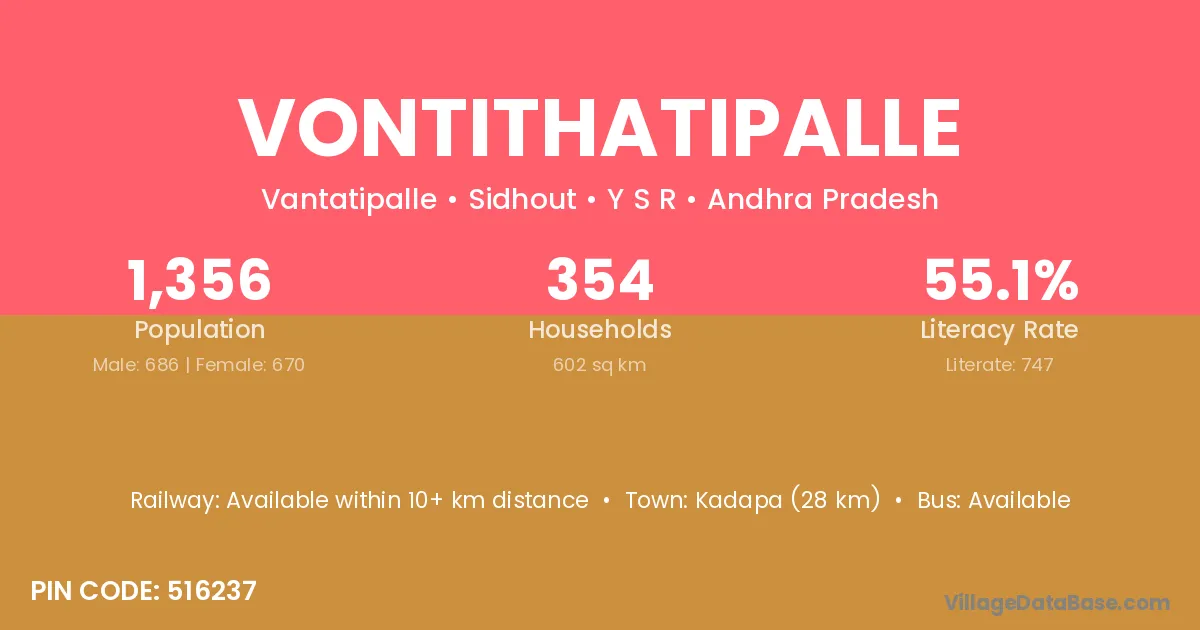 According to Census 2011 information, the village code of Vontithatipalle village is 516237.