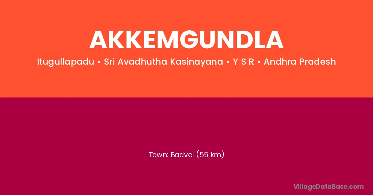 Badvel (55 km) is the nearest town to Akkemgundla village for major economic activities and is located approximately 55 km away.