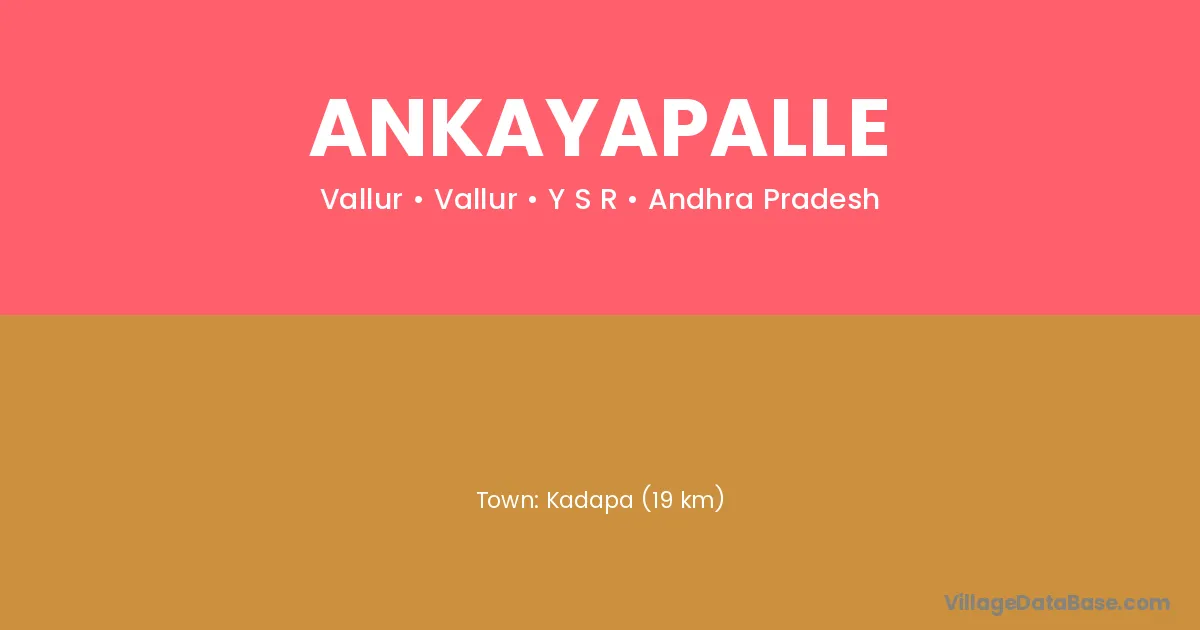 Kadapa (19 km) is the nearest town to Ankayapalle village for major economic activities and is located approximately 19 km away.