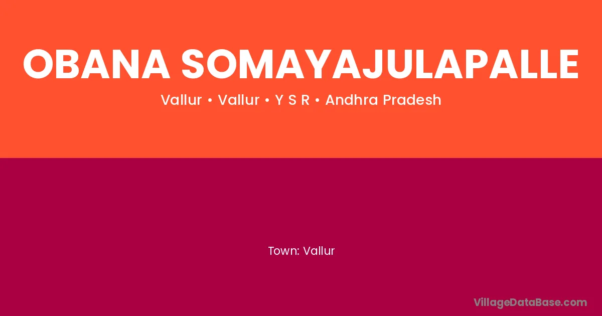 Obana Somayajulapalle village is located in the Vallur Mandal of the Y S R district in Andhra Pradesh .