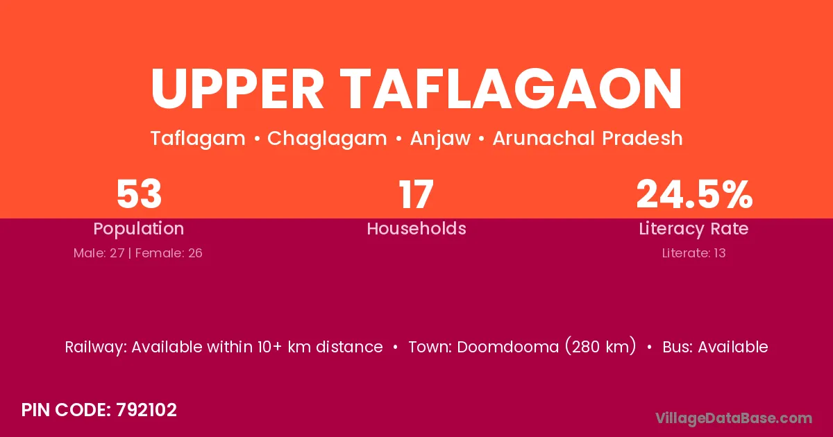 Upper Taflagaon village has a total population of 53 people, of which 27 are males and 26 are females.