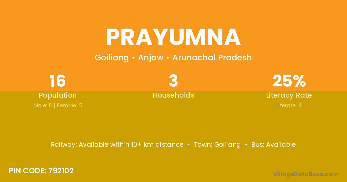 Prayumna village has a total population of 16 people, of which 11 are males and 5 are females.