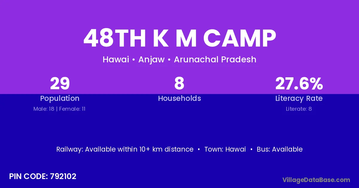 48th K M Camp village has a total population of 29 people, of which 18 are males and 11 are females.