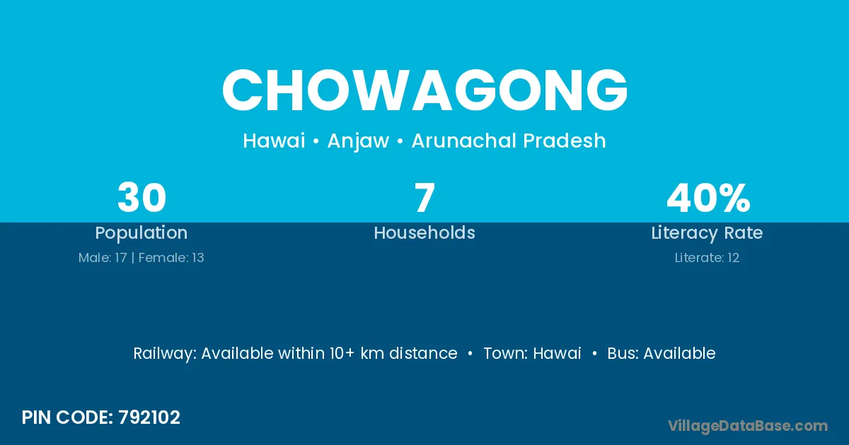 There are approximately 7 households in Chowagong village.