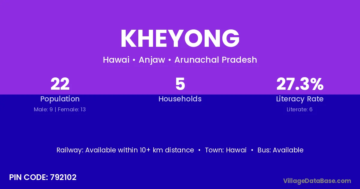 Kheyong village is located in the Hawai Circle of the Anjaw district in Arunachal Pradesh .