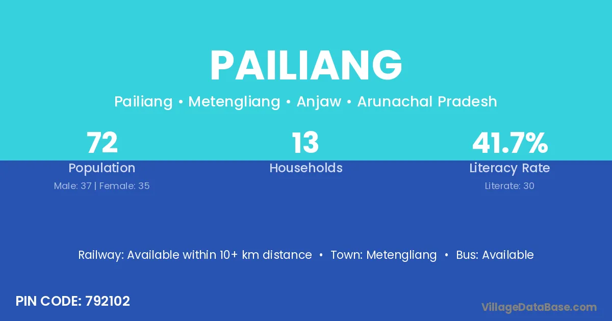 Pailiang village is located in the Metengliang Circle of the Anjaw district in Arunachal Pradesh .