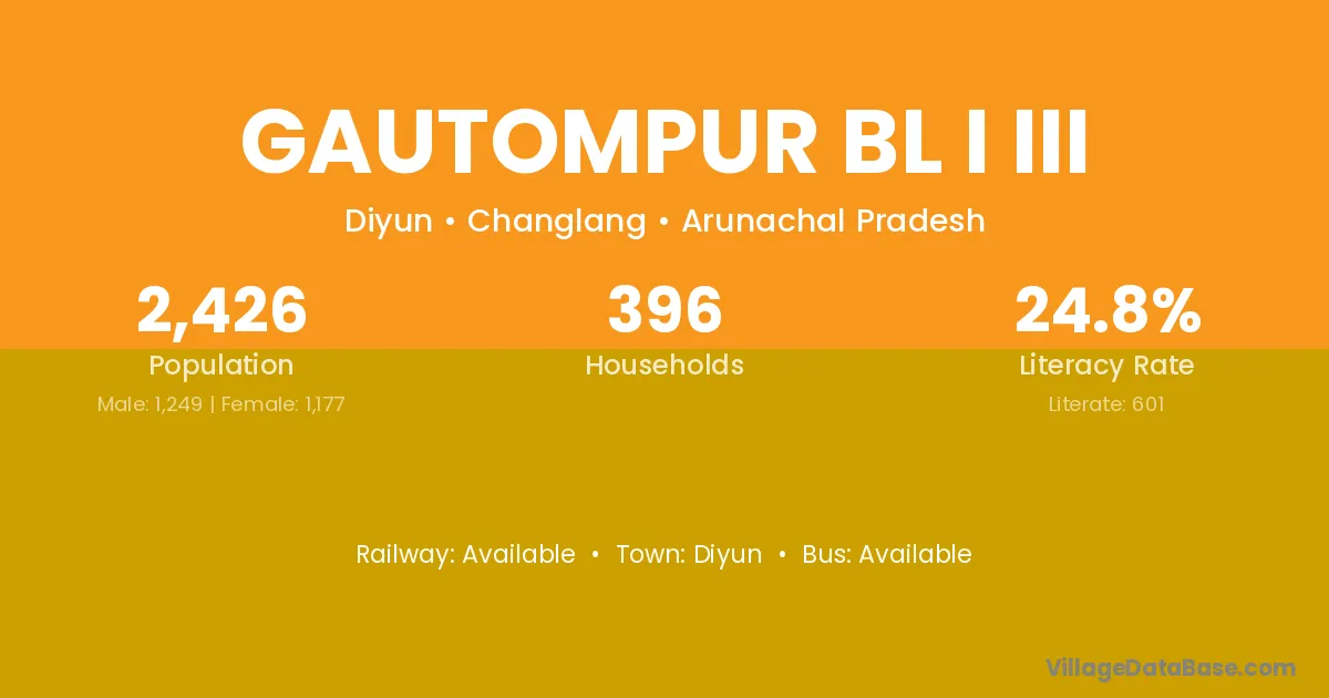 Gautompur Bl I Iii village has a total population of 2,426 people, of which 1,249 are males and 1,177 are females.