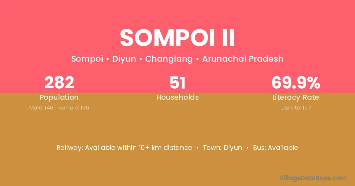 Sompoi Ii village has a total population of 282 people, of which 146 are males and 136 are females.