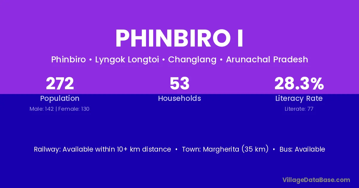Margherita (35 km) is the nearest town to Phinbiro I village for major economic activities and is located approximately 35 km away.
