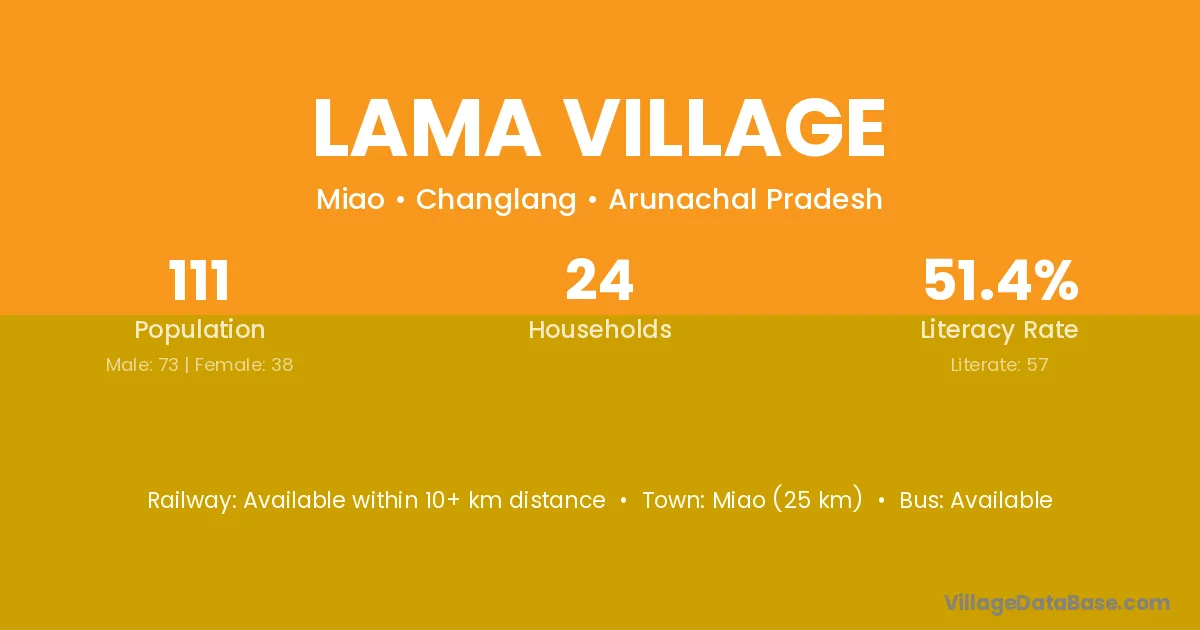 Lama Village village has a total population of 111 people, of which 73 are males and 38 are females.