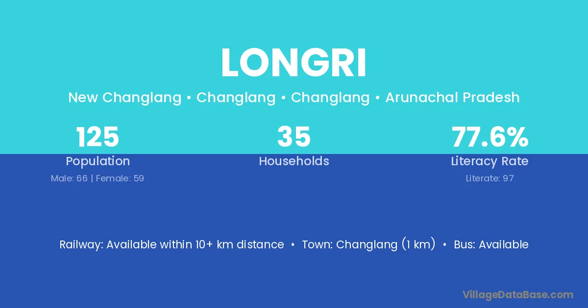 Miao (10 km) is the nearest town to Longri village for major economic activities and is located approximately 10 km away.