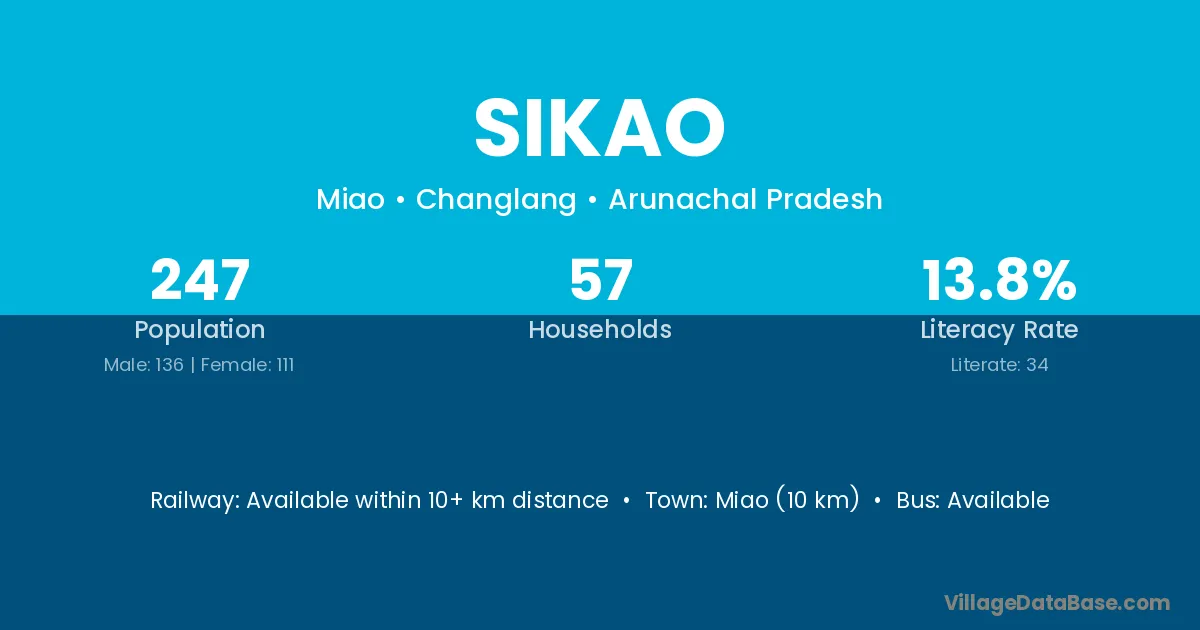 Miao (10 km) is the nearest town to Sikao village for major economic activities and is located approximately 10 km away.