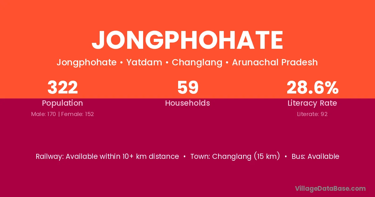 Changlang (15 km) is the nearest town to Jongphohate village for major economic activities and is located approximately 15 km away.