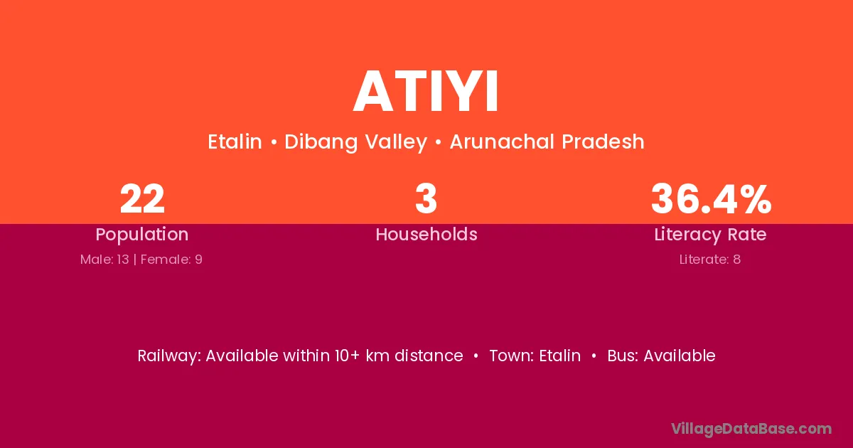 Atiyi village has a total population of 22 people, of which 13 are males and 9 are females.