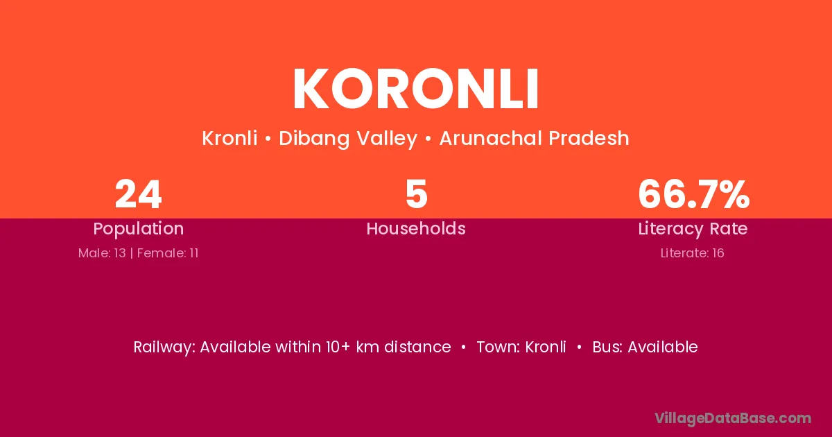 Koronli village has a total population of 24 people, of which 13 are males and 11 are females.