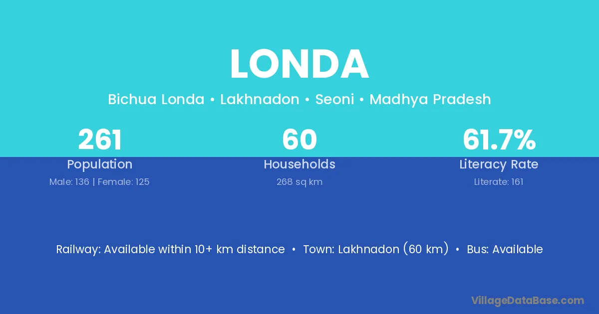 Londa village has a total population of 275 people, of which 138 are males and 137 are females.