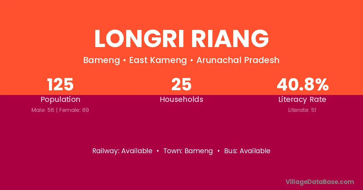 Longri Riang village has a total population of 125 people, of which 56 are males and 69 are females.