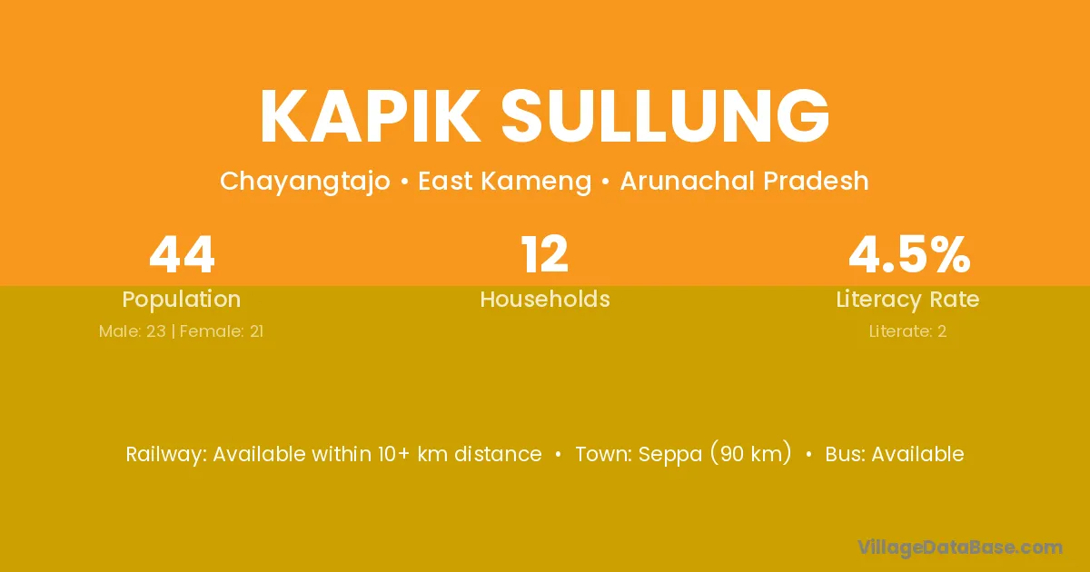 Kapik Sullung village has a total population of 44 people, of which 23 are males and 21 are females.