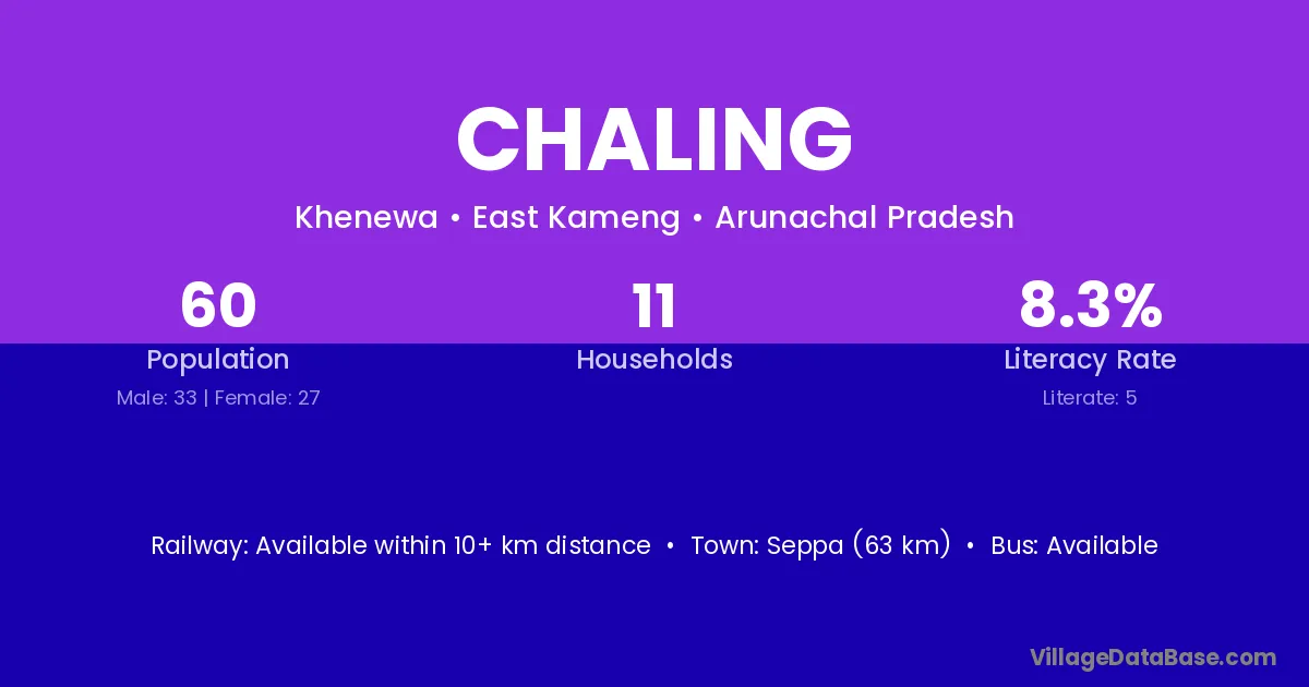 Chaling village has a total population of 60 people, of which 33 are males and 27 are females.